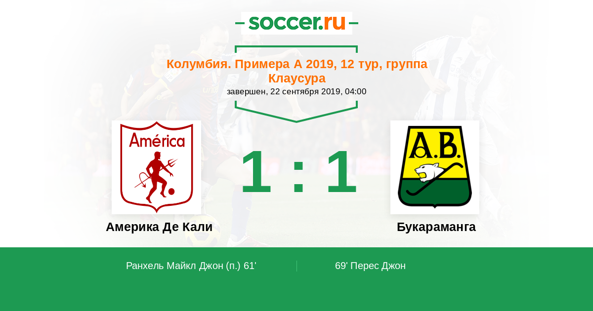 69' (1:1) Перес Джон (10) (Кинтеро Сесар (30))
