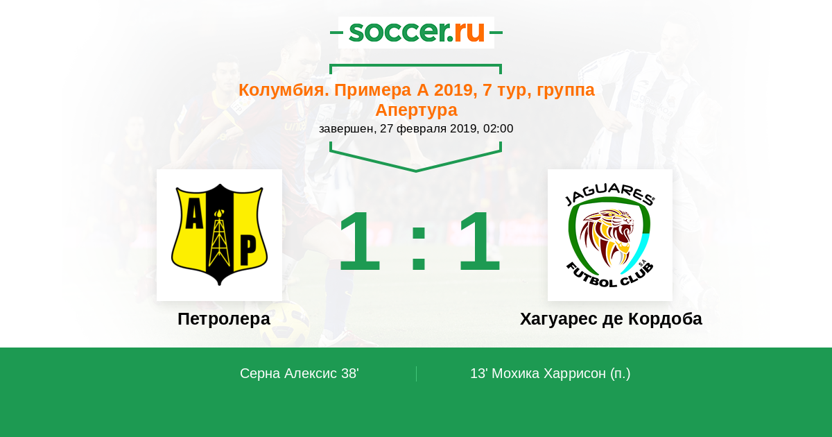 38' (1:1) Серна Алексис (20) (Корреа Хосе Эрик (27))