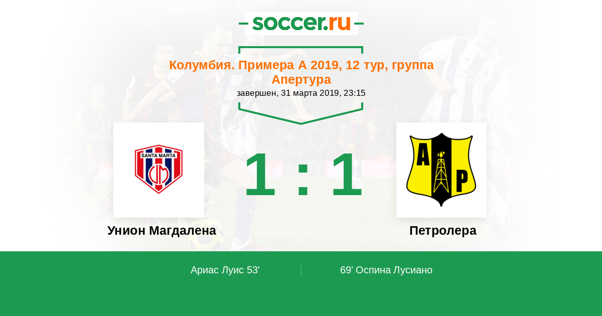 53' (1:0) Ариас Луис (9) (Канчано Андрес (31))