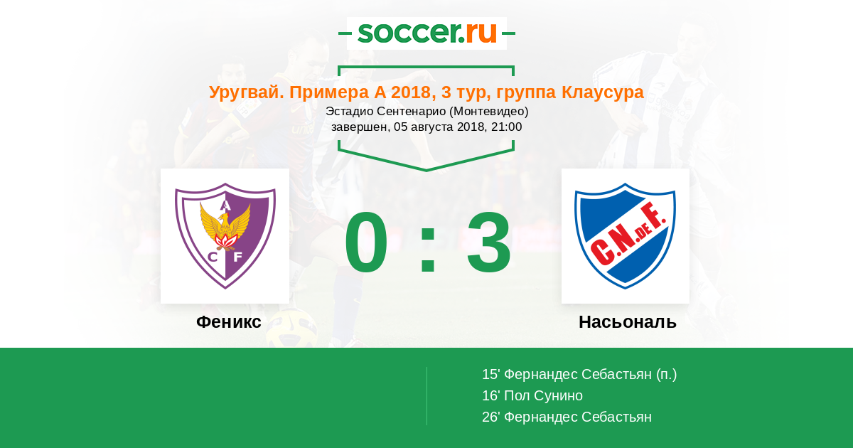 26' (0:3) Фернандес Себастьян (18)
