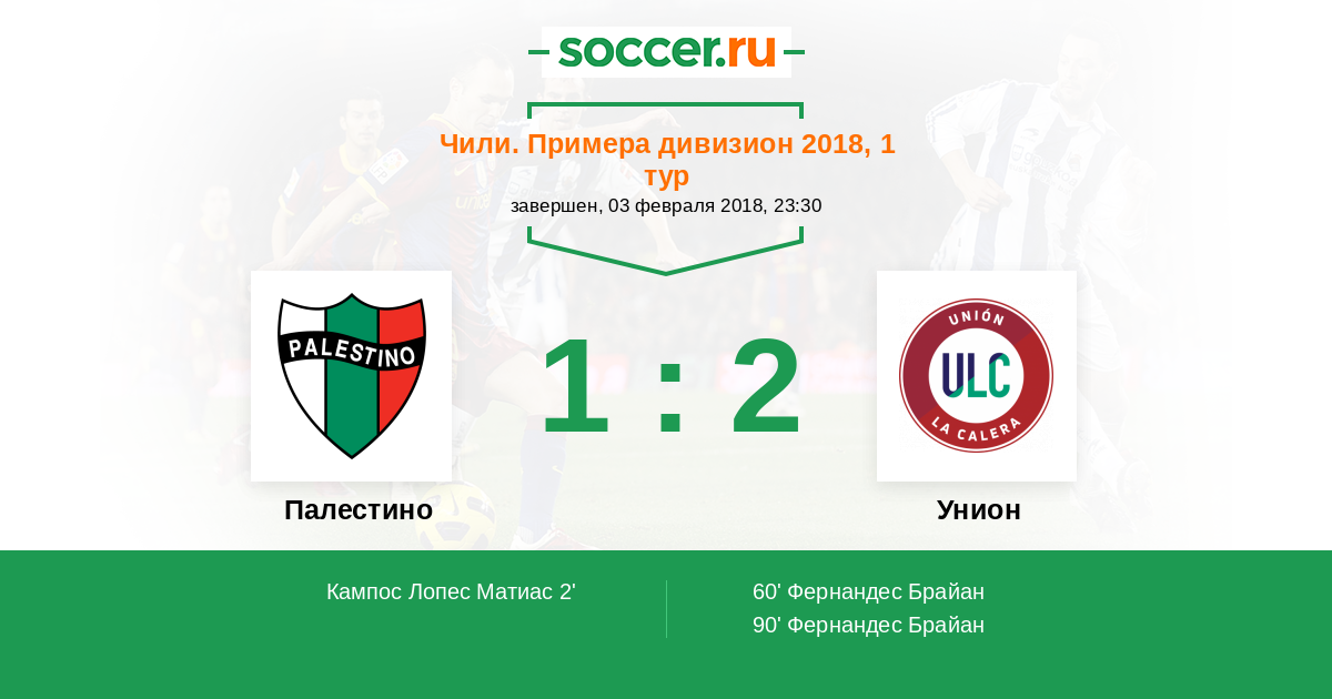 2' (1:0) Кампос Лопес Матиас (9) (Кортес Сесар (13))