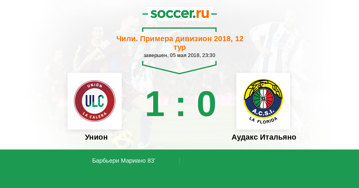 83' (1:0) Барбьери Мариано (11) (Абан Гонсало (18))