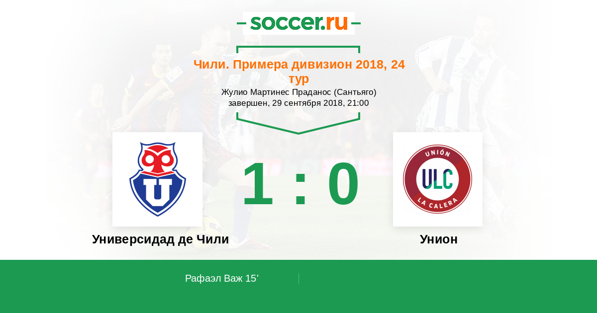 15' (1:0) Рафаэл Важ (5) (Писарро Давид (8))
