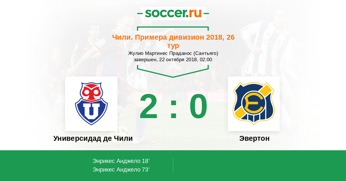 18' (1:0) Энрикес Анджело (9) (Арансибия Франсиско (19))