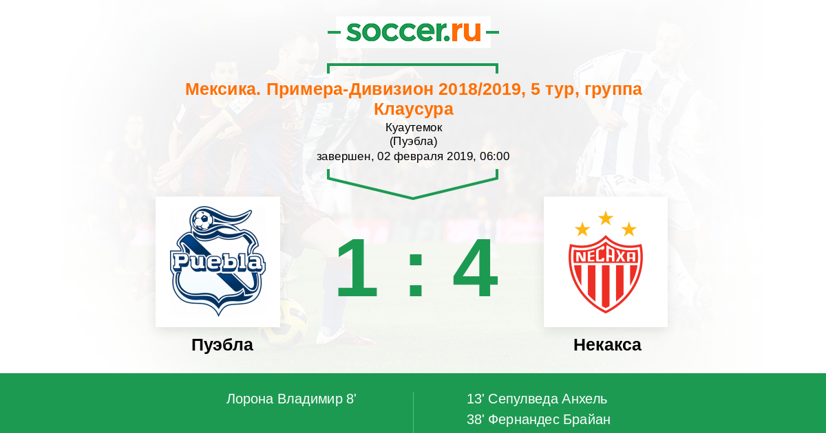 13' (1:1) Сепулведа Анхель (23) (Гузман Карлос (12))
