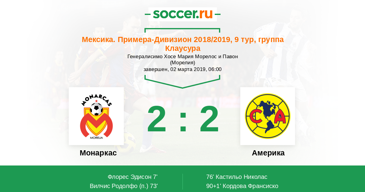 Запасные: Феррейра Карлос (с 46'), Ахильер Габриэль (с 62'), Вилчис Родолфо (с 69'), Авила Ирвен, Рамирес Кандидо, Дель Анхель Эдуардо, Малагон Луис