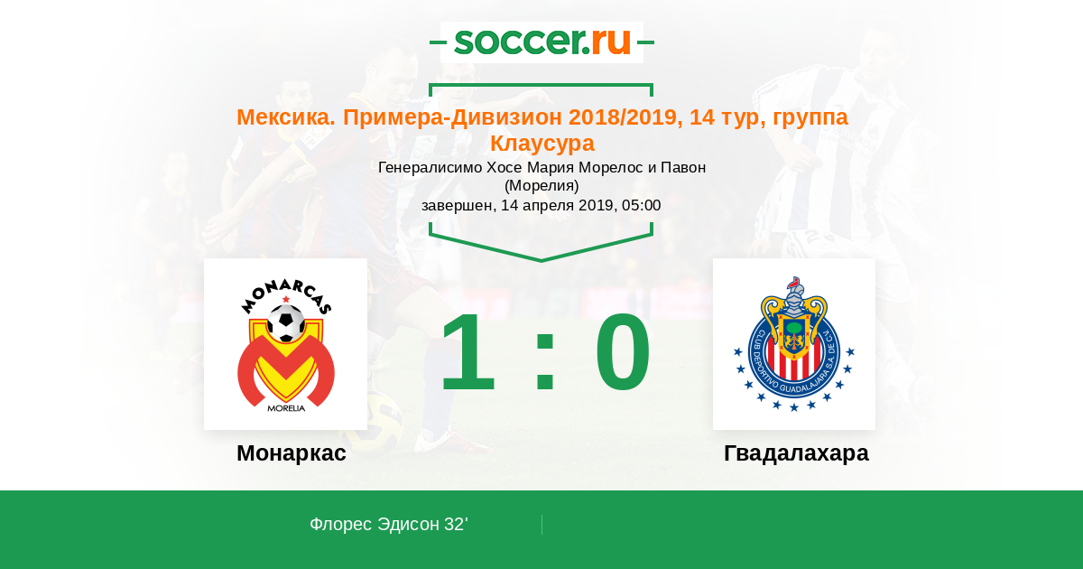32' (1:0) Флорес Эдисон (14) (Рамирес Кандидо (15))