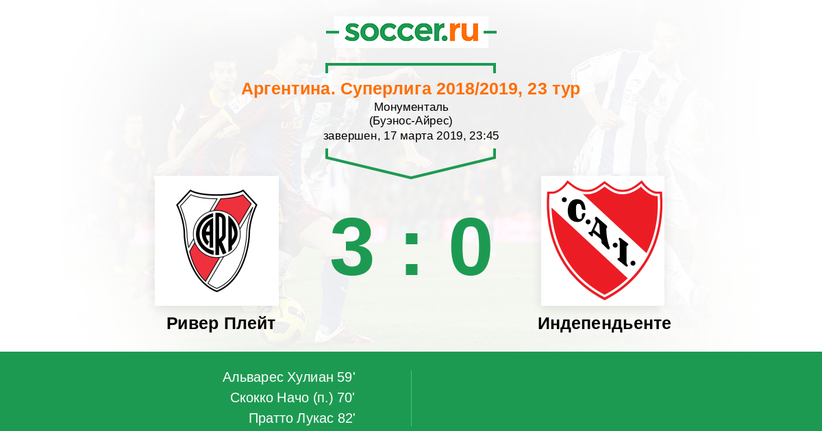 59' (1:0) Альварес Хулиан (9) (Суарес Матиас (7))