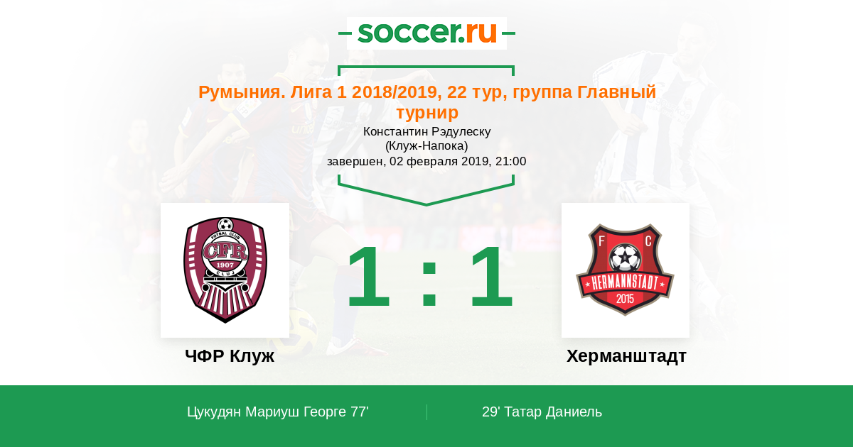 29' (0:1) Татар Даниель (17)