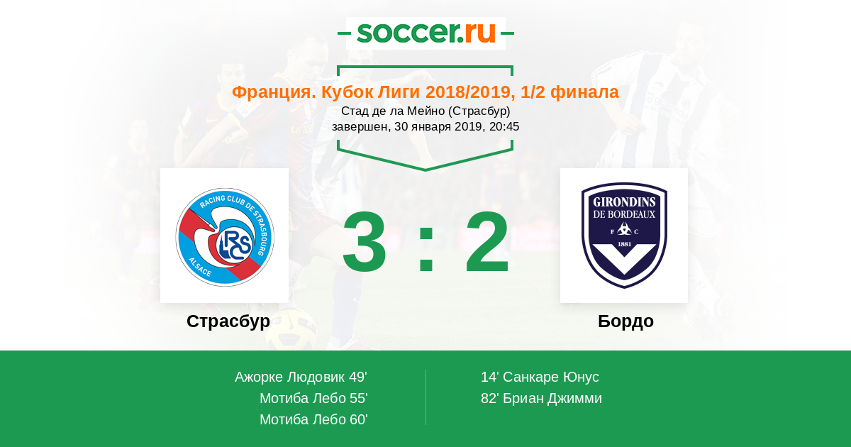 60' (3:1) Мотиба Лебо (12) (Ажорке Людовик (25))