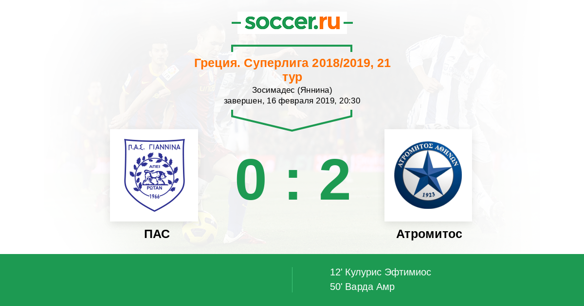 50' (0:2) Варда Амр (74) (Хациисайас Димитрис (5))