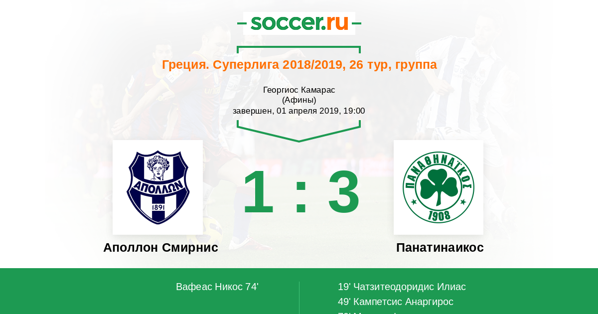74' (1:2) Вафеас Никос (5) (Д'Урсо Кристиан (30))