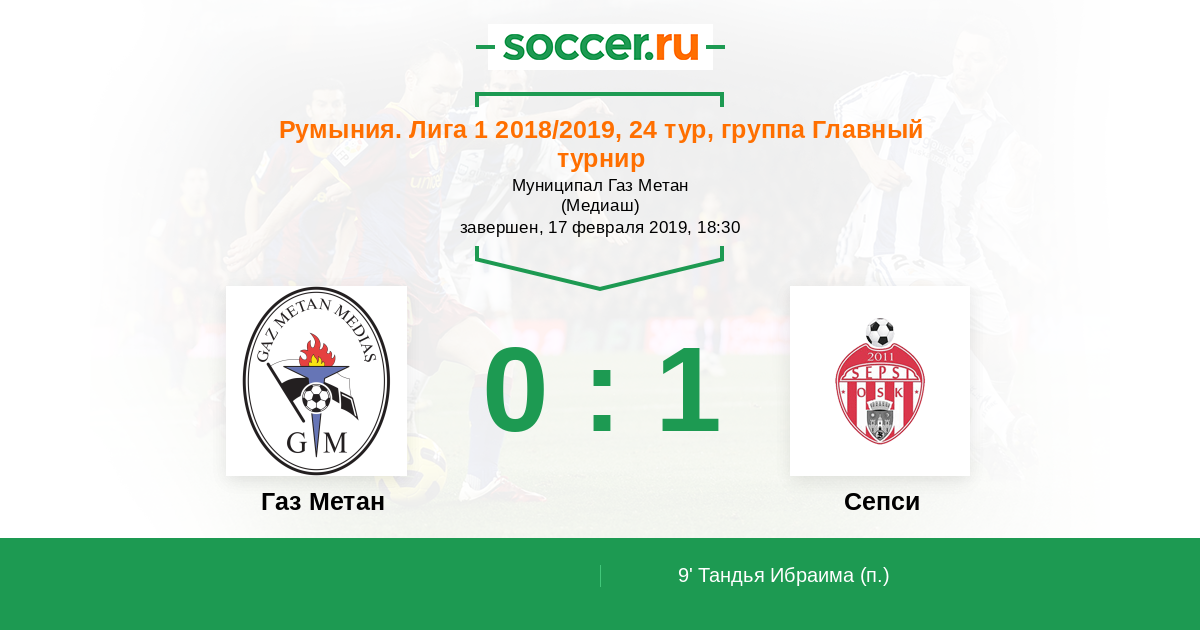 9' (0:1) Тандья Ибраима (10)