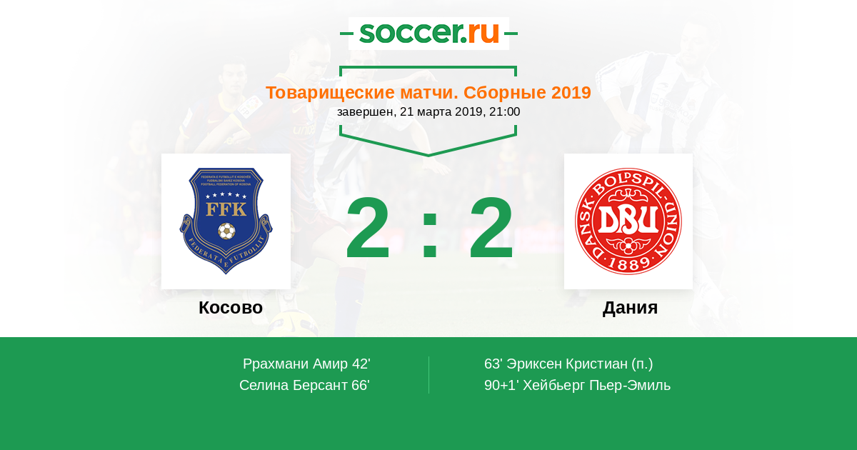 Запасные: 17 Ларсен Йенс (с 46'), 4 Кьер Симон (с 60'), 10 Эриксен Кристиан (с 60'), 12 Дольберг Каспер (с 60'), 21 Гюткьяер Кристиан (с 77'), 16 Лессль Йонас, 5 Кнудсен Йонас, 20 Поульсен Юссуф, 19 Шене Лассе, 15 Биллинг Филипп, 22 Реннов Фредерик, 3 Андерсен Йоаким