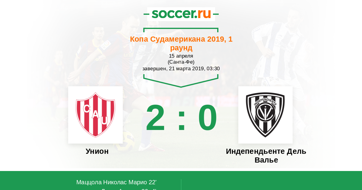22' (1:0) Маццола Николас Марио (12) (Сабала Диего (11))