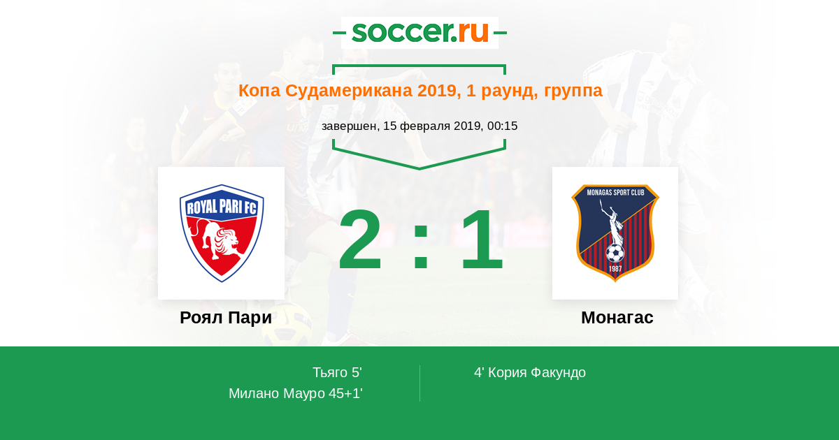 45+1' (2:1) Милано Мауро (25) (Силес Омар (27))