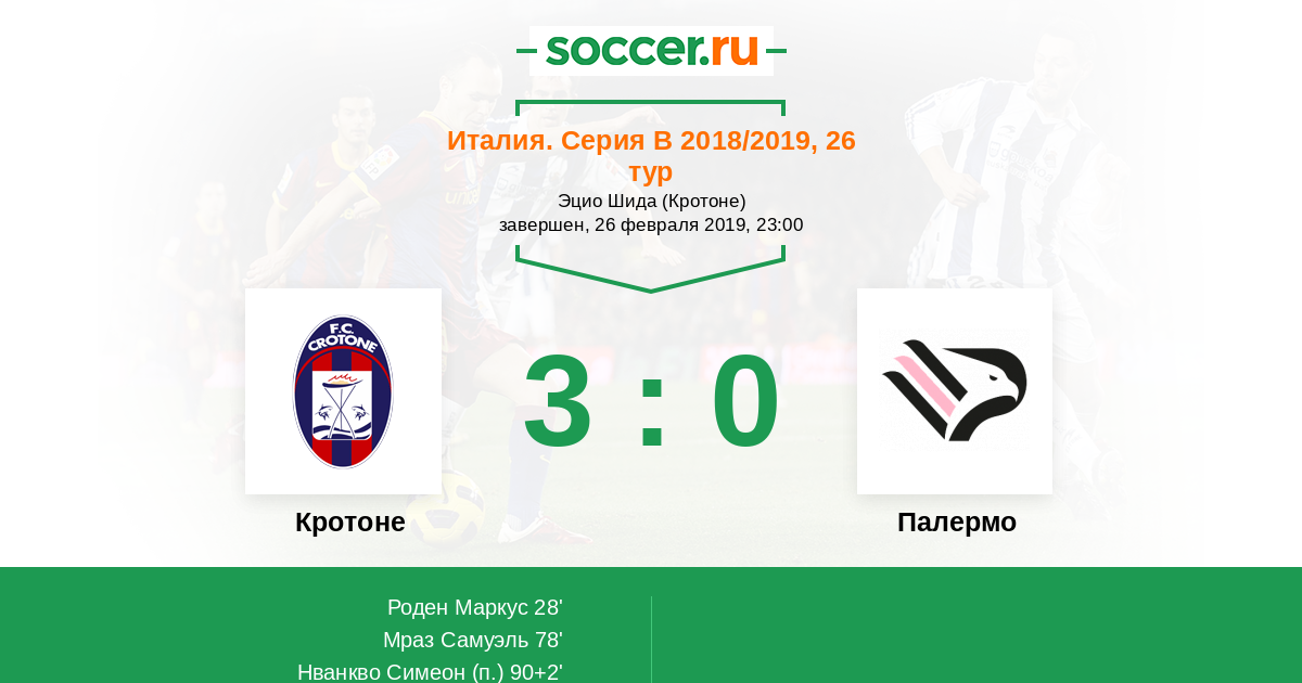 Запасные: 33 Мраз Самуэль (с 45'), 21 Дзанеллато Никколо (с 83'), 13 Трипалделли Алессандро (с 89'), 19 Марчицца Риккардо, 3 Куомо Джузеппе, 7 Фиренце Марко, 17 Каргбо Аугустус, 5 Големич Владимир, 22 Феста Марко, 15 Гомельт Томислав, 27 Вальетти Федерико, 20 Молина Сальваторе