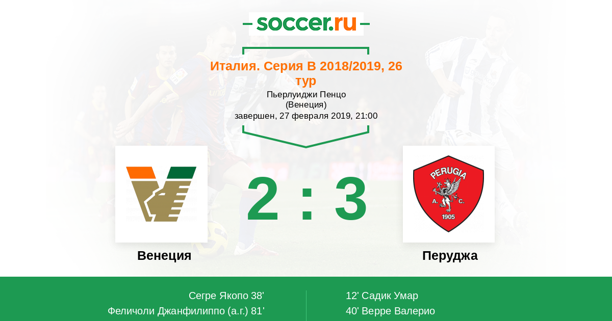 40' (1:2) Верре Валерио (5) (Фальцерано Марсело (26))