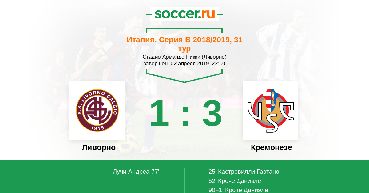 25' (0:1) Кастровилли Гаэтано (8) (Кроче Даниэле (11))