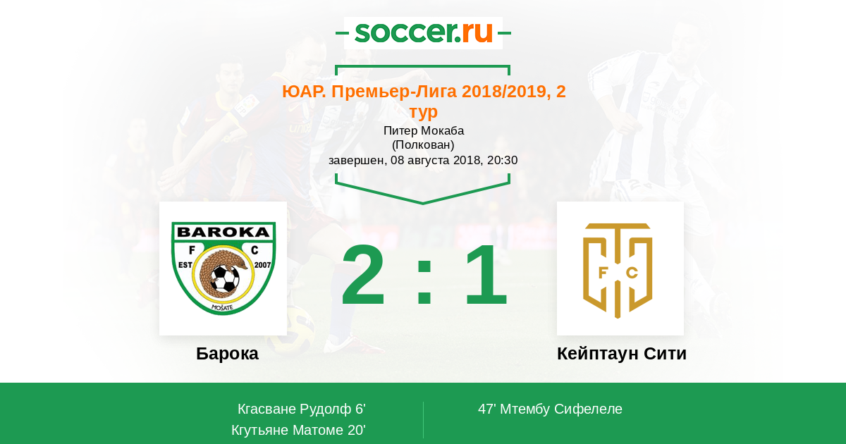 20' (2:0) Кгутьяне Матоме (2) (Мдантсане Мдудузи (8))
