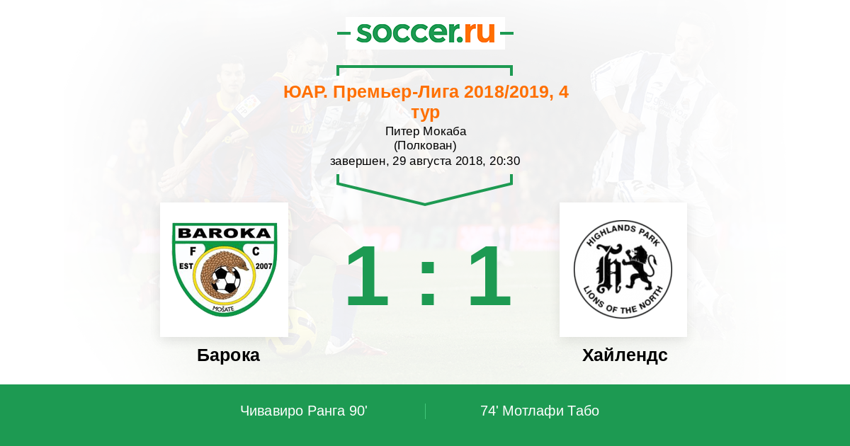 74' (0:1) Мотлафи Табо (17) (Нембе Сабело (31))