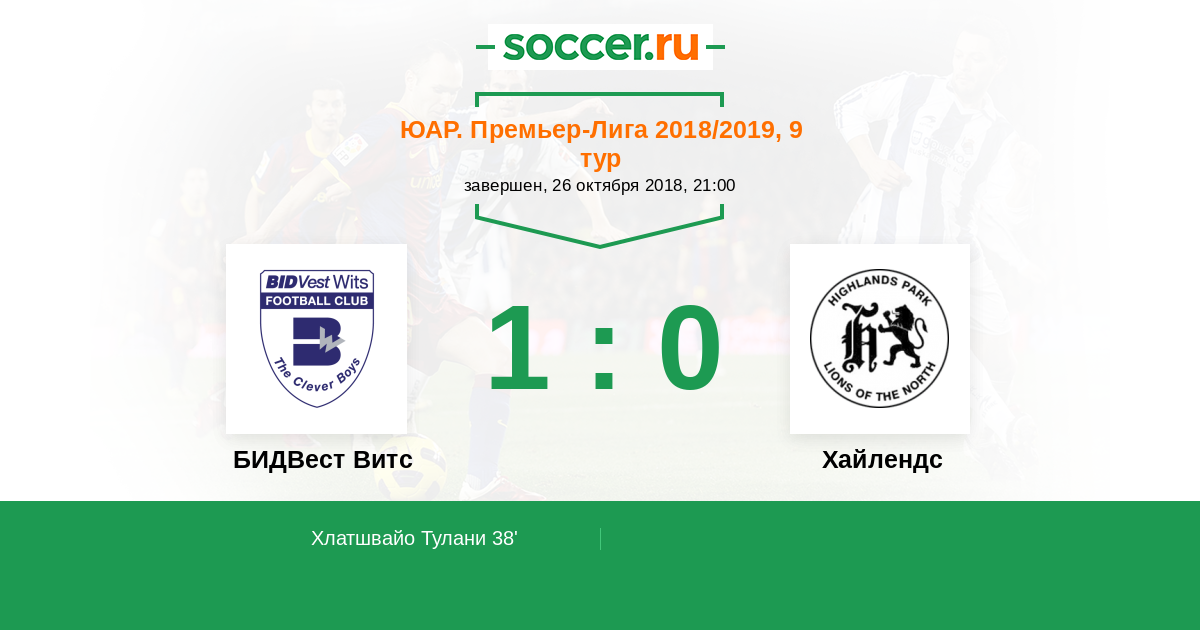 38' (1:0) Хлатшвайо Тулани (3) (Ритчи Киган (27))