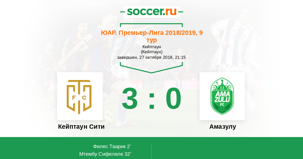 32' (2:0) Мтембу Сифелеле (25) (Ралани Брэдли (11))
