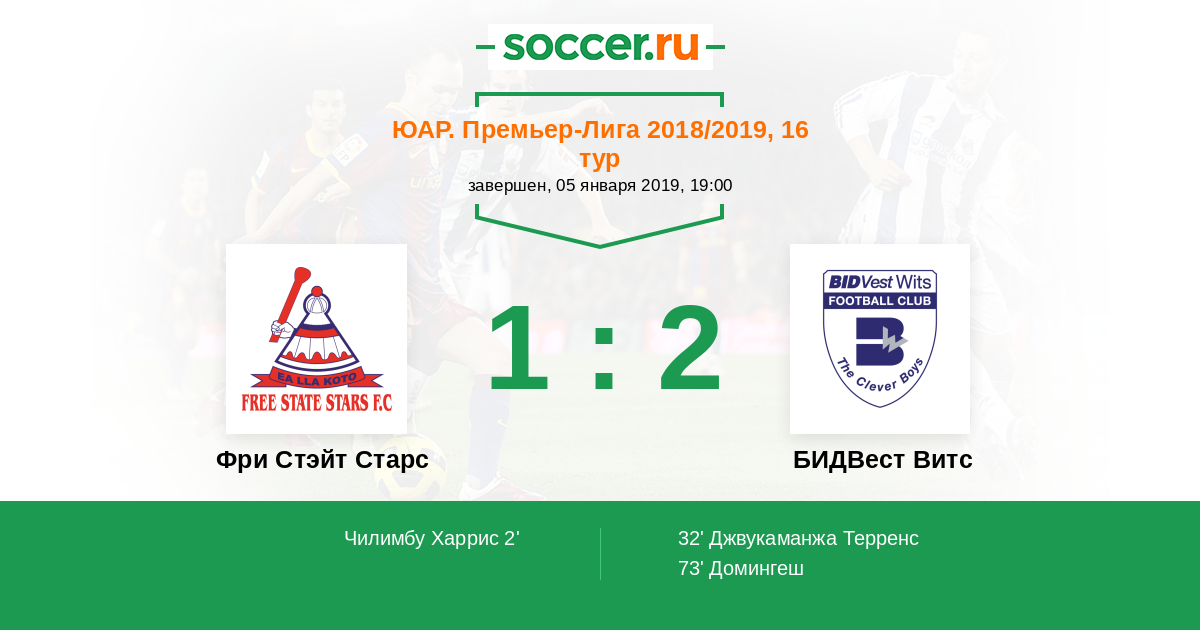 Запасные: 14 Клаасен Дейлон (с 66'), 9 Мюррей Саймон (с 70'), 5 Вайдлих Денис-Дансо (с 83'), 10 Мханго Франк, 21 Доминго Хашим, 23 Госс Рикардо, 24 Мотупа Гифт