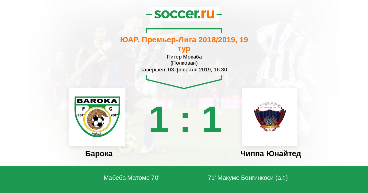 71' (1:1) Автогол Макуме Бонгинкоси (5)