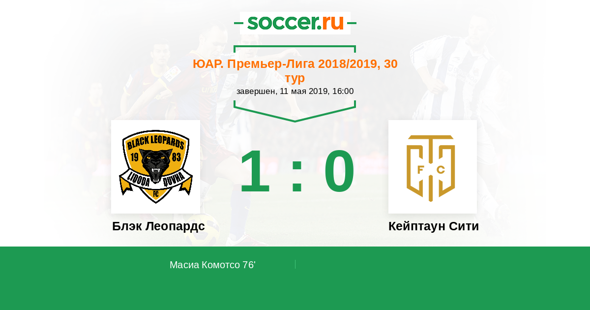 76' (1:0) Масиа Комотсо (29) (Беренг Тшварело (15))
