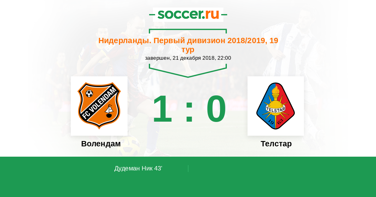 43' (1:0) Дудеман Ник (7) (Бетти Мохамед (5))