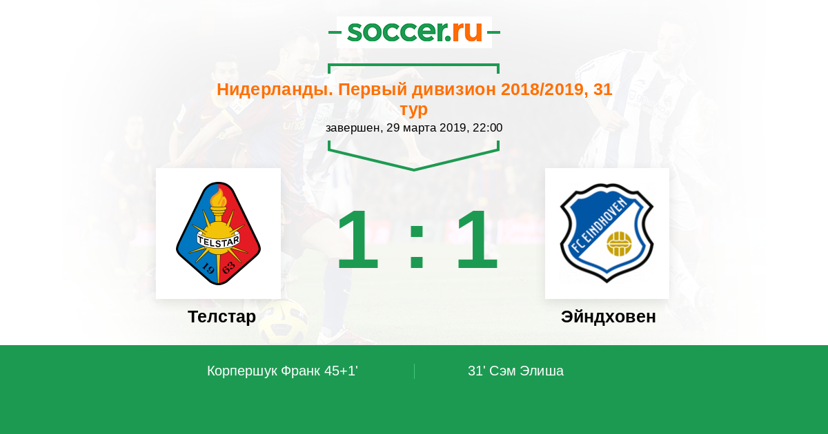 31' (0:1) Сэм Элиша (19) (Ван ден Бумен Бранко (10))