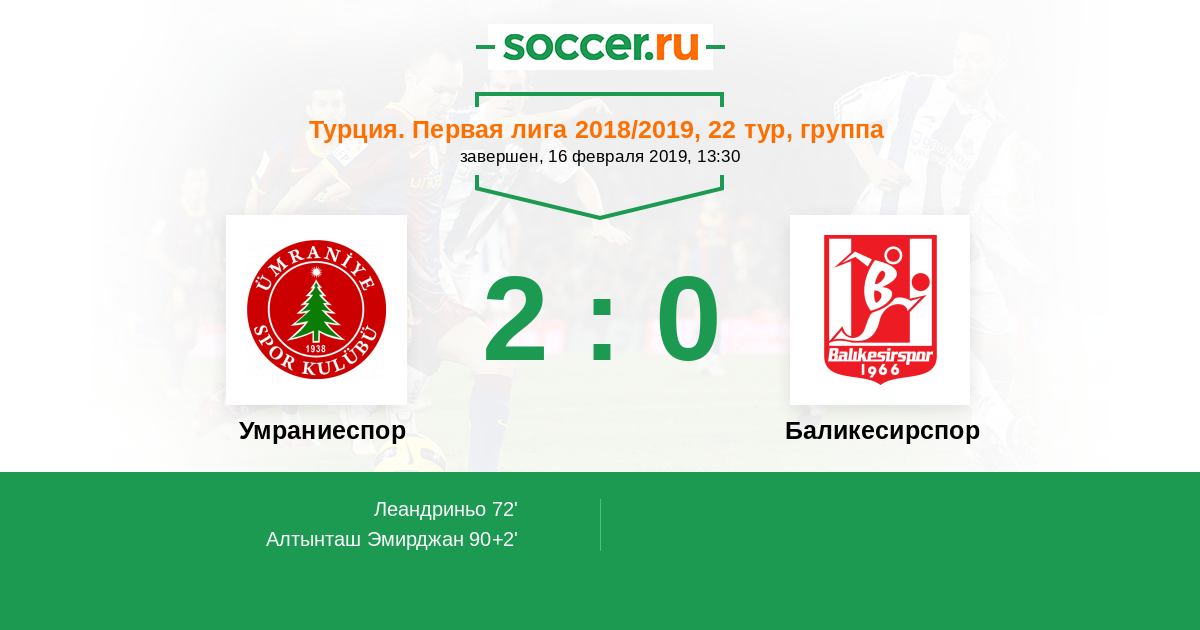 72' (1:0) Леандриньо (9) (Окумуш Алааддин (22))
