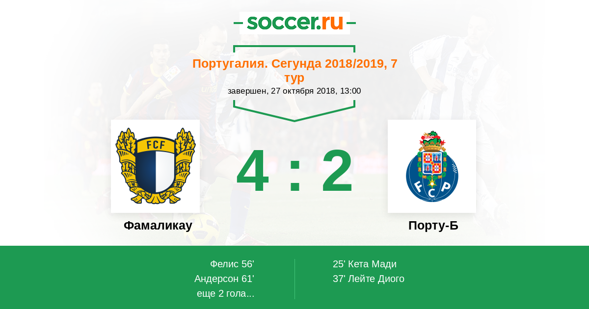 37' (0:2) Лейте Диого (4)