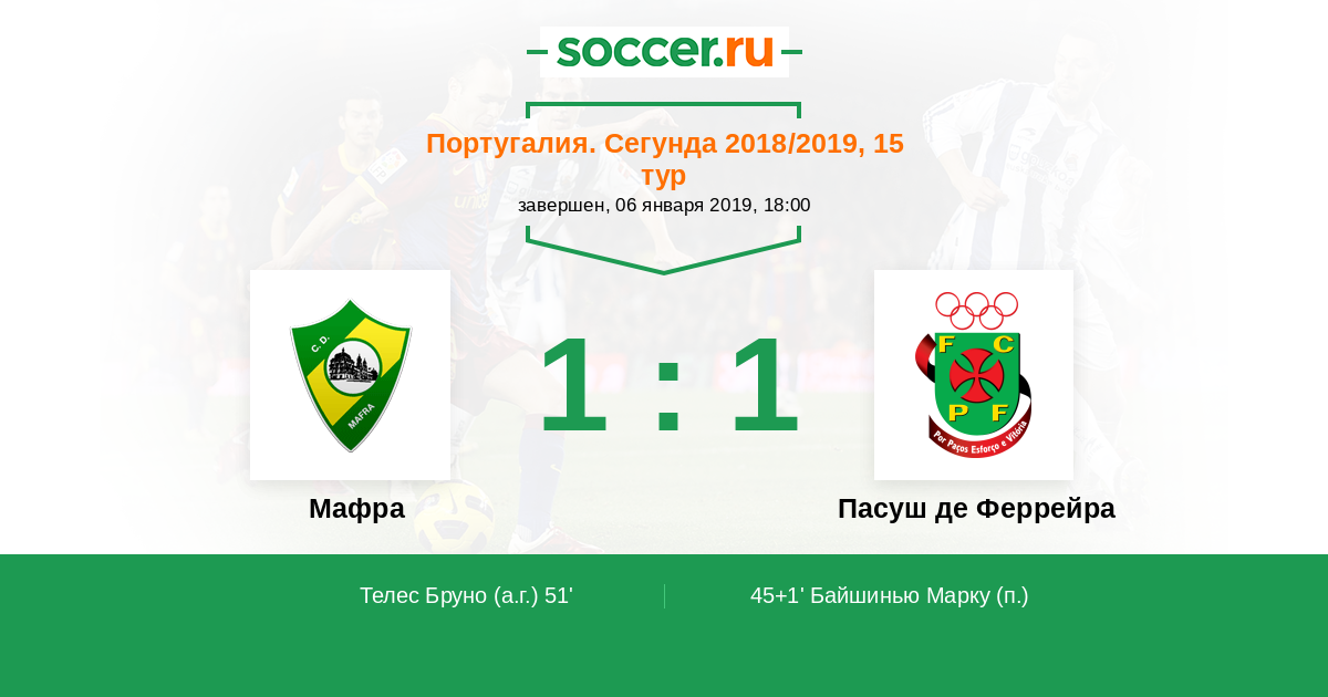 51' (1:1) Автогол Телес Бруно (6)
