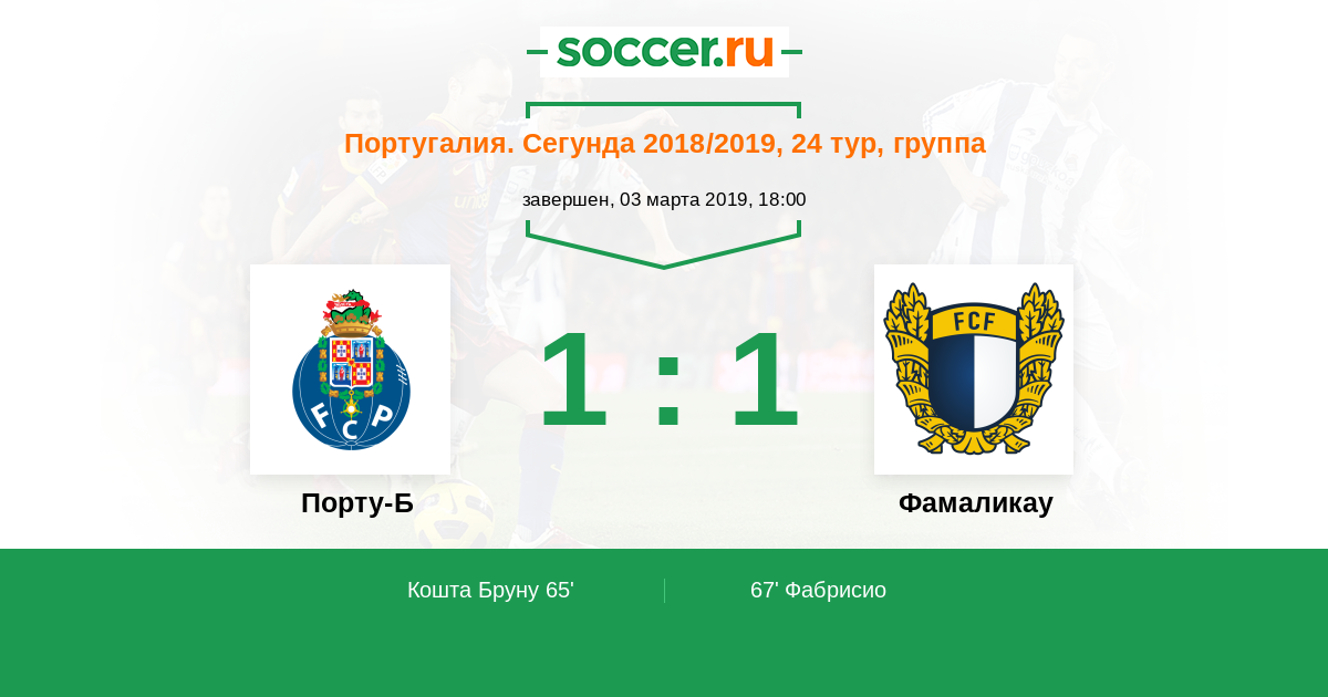 65' (1:0) Кошта Бруну (6)