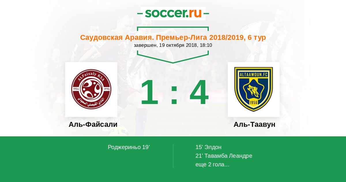 21' (1:2) Тавамба Леандре (3) (Элдон (20))