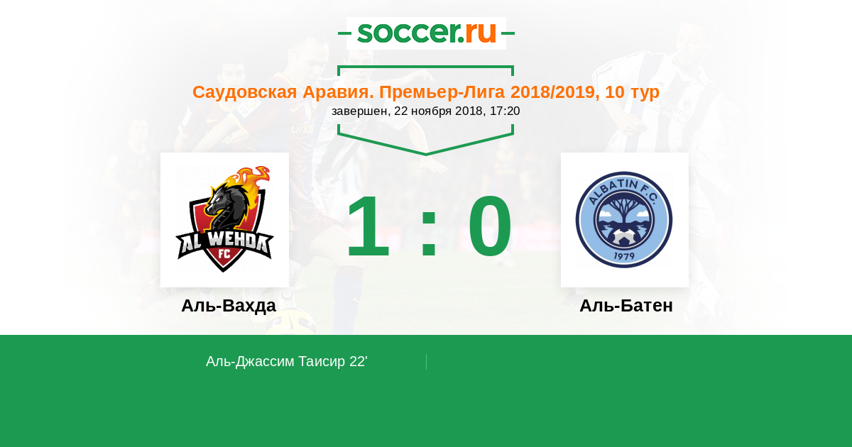22' (1:0) Аль-Джассим Таисир (17) (Отеро Ромуло (10))