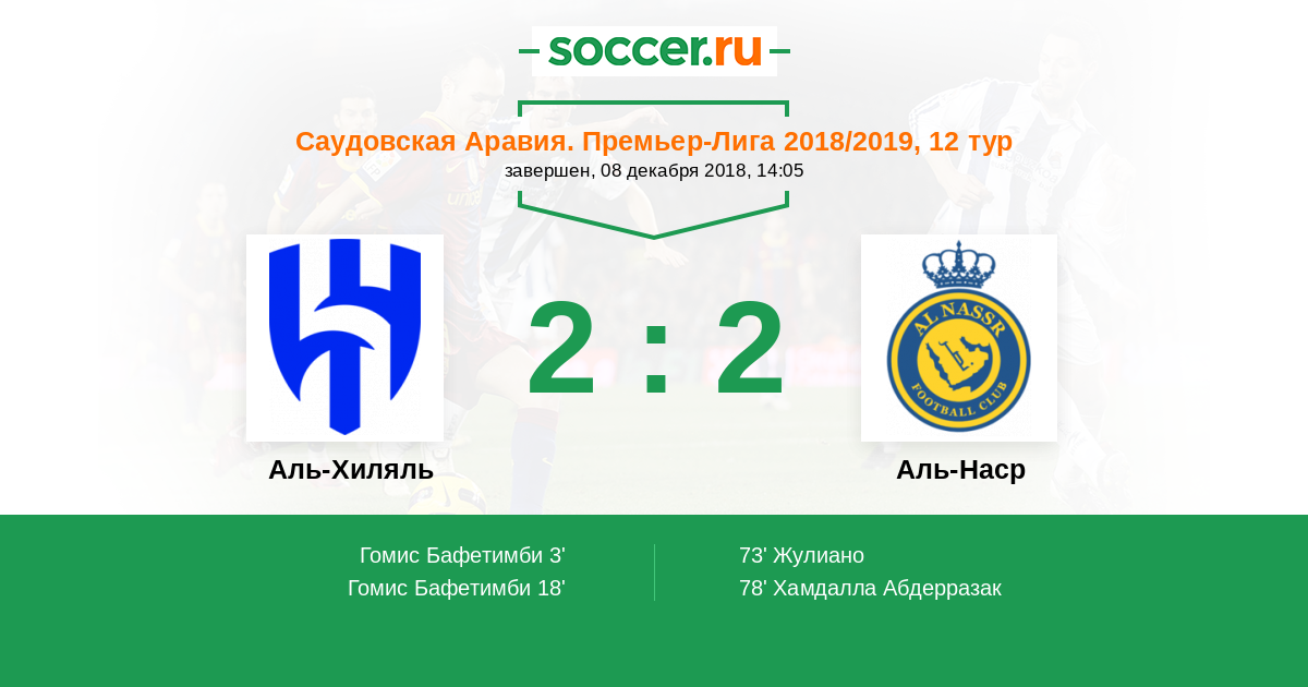 18' (2:0) Гомис Бафетимби (18) (Аль-Бурайк Мухаммед (2))