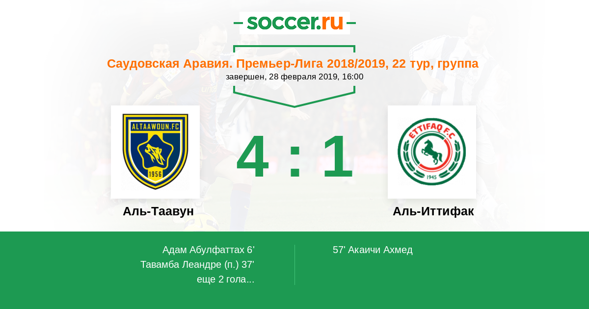 57' (3:1) Акаичи Ахмед (90) (Эль Хаззаа Хаззаа (9))