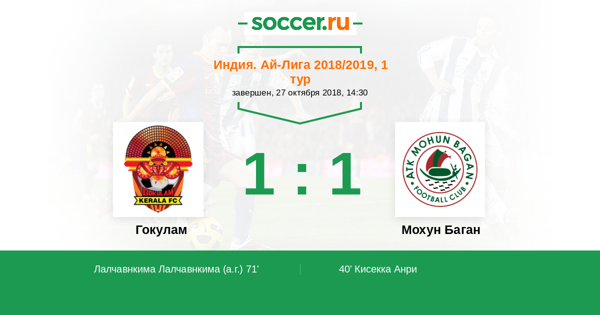 71' (1:1) Автогол Лалчавнкима Лалчавнкима (19)