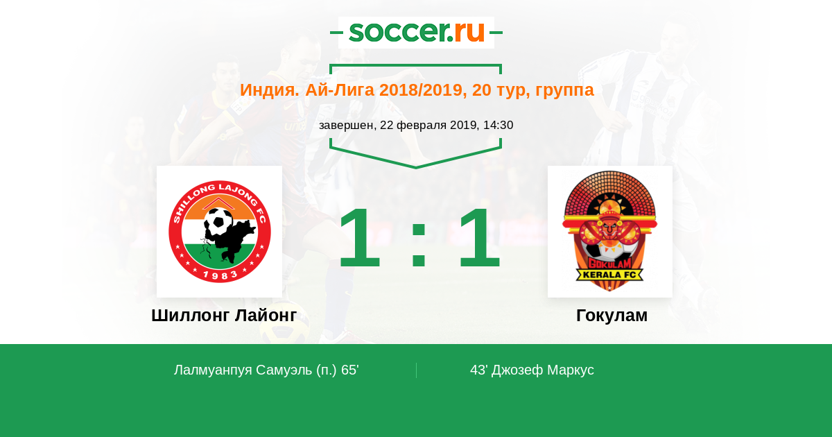 65' (1:1) Лалмуанпуя Самуэль (9)