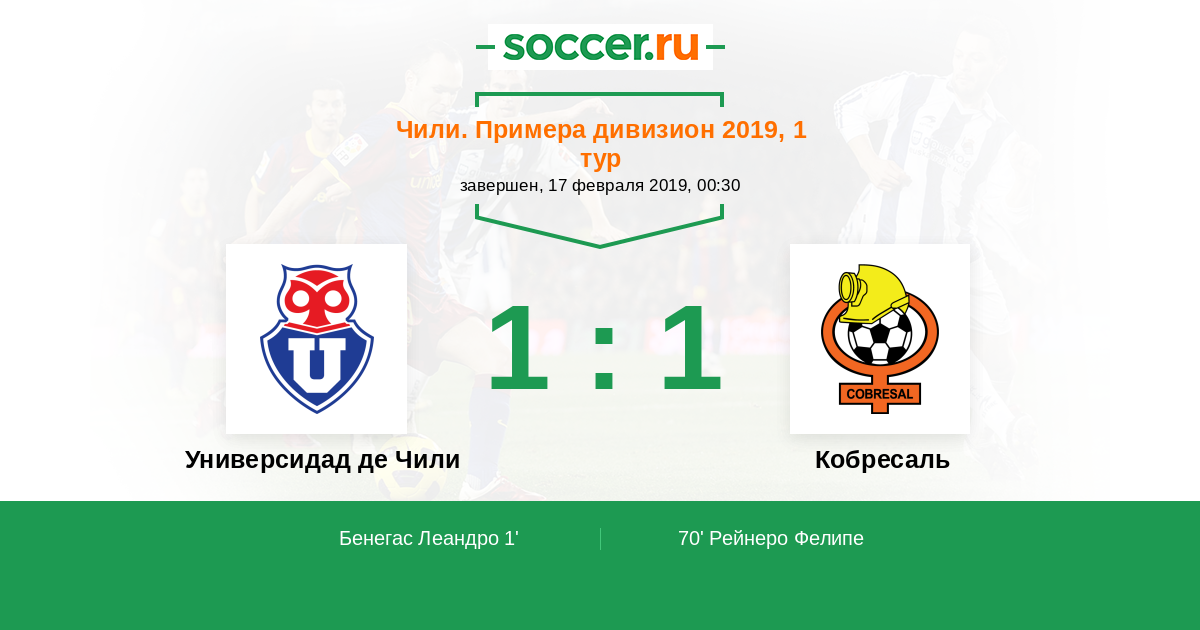 1' (1:0) Бенегас Леандро (7) (Родригес Матиас (6))