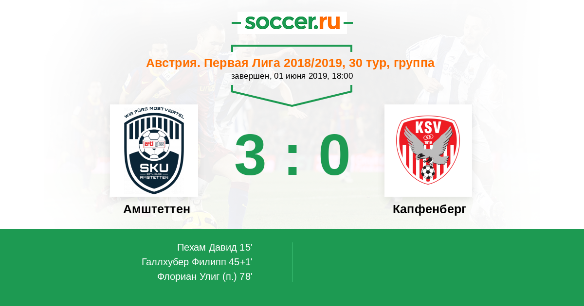 15' (1:0) Пехам Давид (9) (Ворм Маттиас (13))