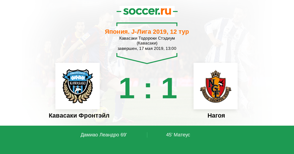 69' (1:1) Дамиао Леандро (9) (Хасегава Татсуя (16))