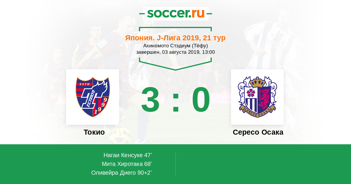 Запасные: 8 Какитани Йоширо (с 56'), 11 Элиерсе де Соуза (с 66'), 6 Леандро Десабато (с 76'), 32 Атому Танака, 23 Ямашита Татсуя, 1 Какой Кентаро, 16 Катаяма Эличи