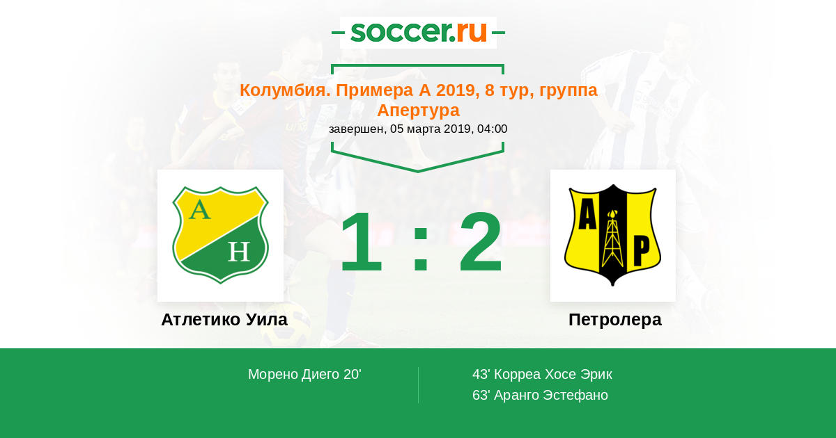 20' (1:0) Морено Диего (13) (Агудело Кевин (6))