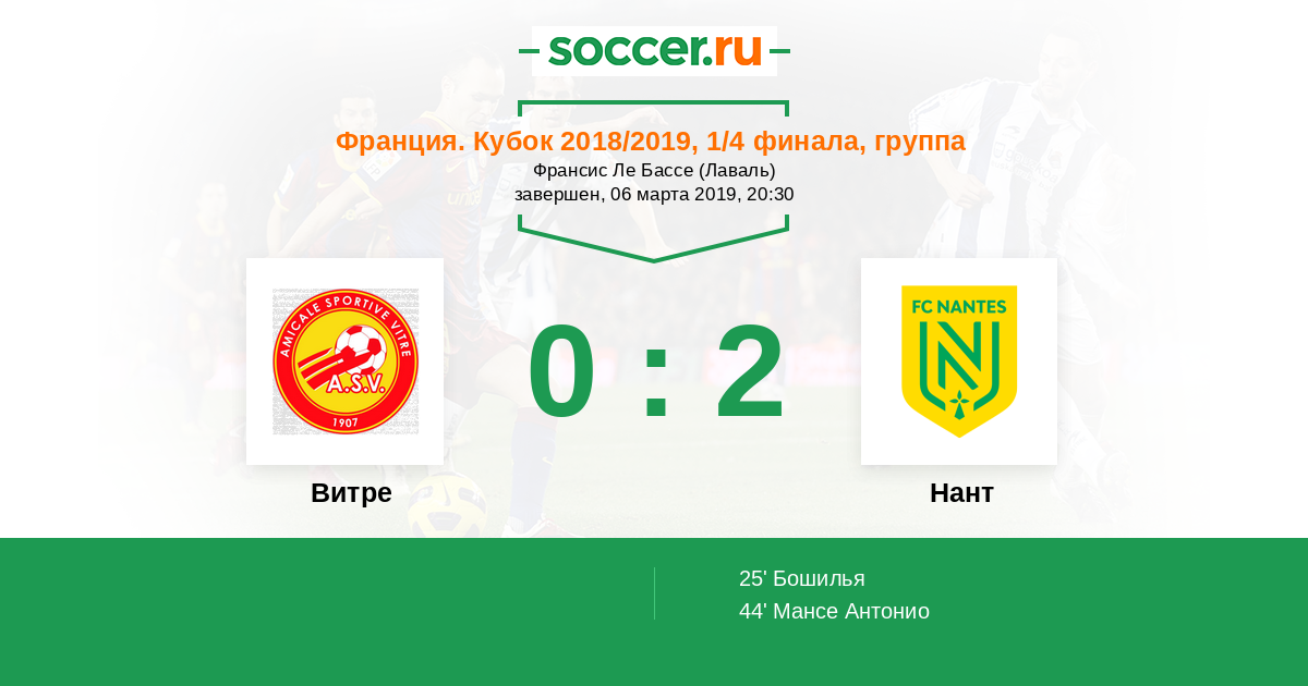 Запасные: 17 Меноре Бриак (с 70'), 16 Реми Лоран (с 79'), 14 Хенафф-Ле Галль Корантен (с 89'), 18 Н'Тесса Картельен, 13 Ренье Жюльен, 12 Гежен Оливье, 25 Делануэ Кевин