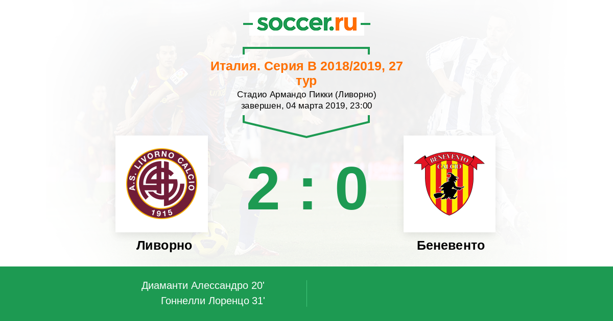 20' (1:0) Диаманти Алессандро (23) (Агацци Давиде (34))