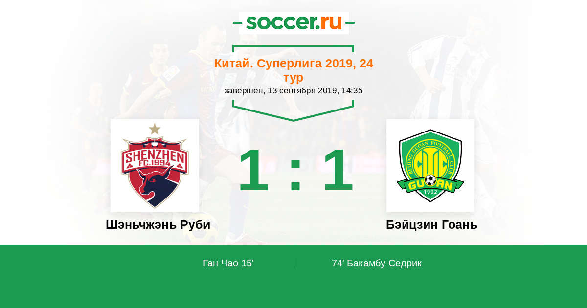 15' (1:0) Ган Чао (39) (Соуза Диего (40))